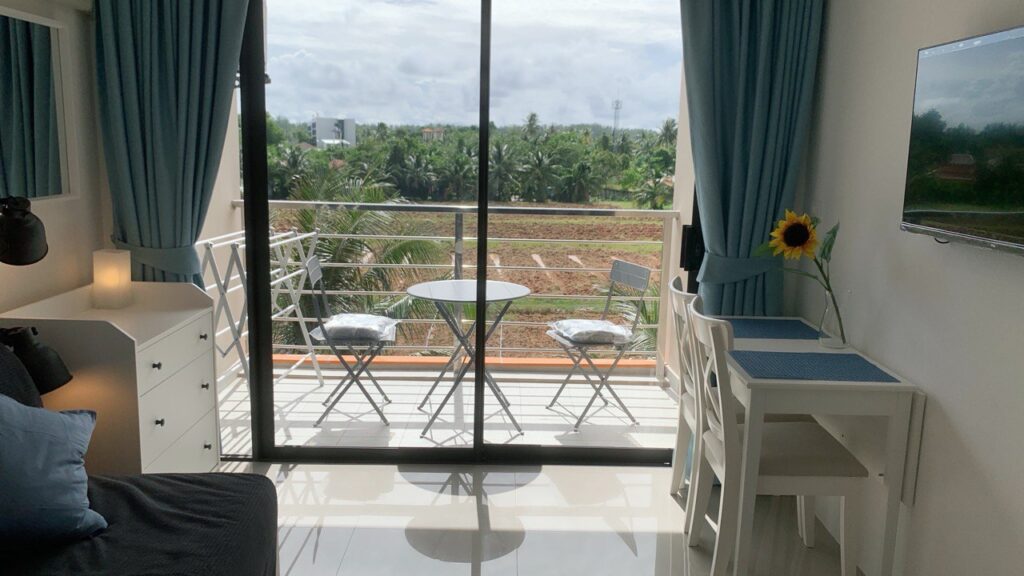 Welcome to “777 Maikhao Beach Condo”, a unique condominium located in the picturesque area of MaiKhao in Phuket, only 15 min driving from the airport and just 10 min walking to the nice Nai Yang beach. Our studio, 18 square meters, offer everything you need for a comfortable stay, including fully equipped kitchen and cozy balcony country and sunset view.