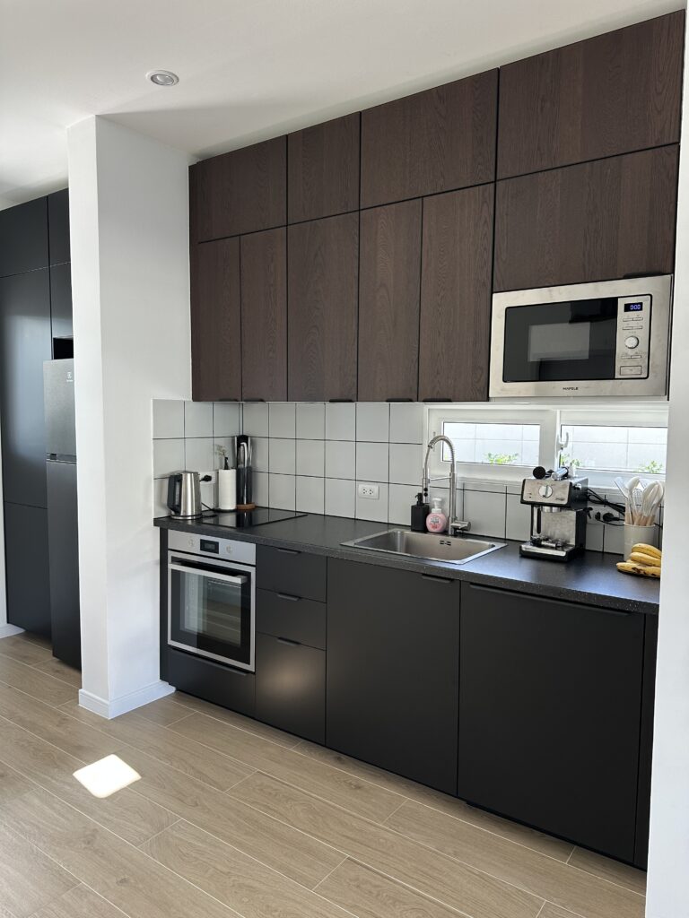 This townhouse is located at the end of the building, with neighbors only on one side, providing extra privacy. The soundproofing of the walls and roof not only ensures quietness but also reduces energy costs.