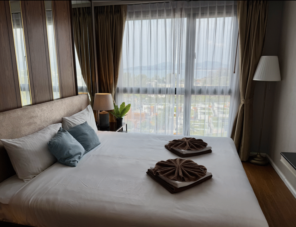 Imagine a morning when the sea is already glittering in the sunlight and you’re looking at it from the 7th floor without even getting up from the sofa. You open the window — a warm sea breeze and the scent of the tropics fill the apartment. Surin Beach is just a short walk away, and at home you have everything you need to live as comfortably as in the city, only by the sea.
